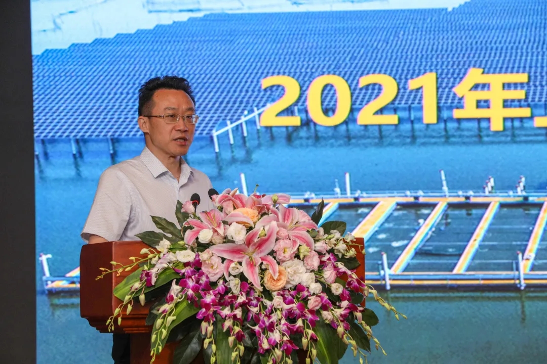 6月22日,通威新能源2021半年度述職會在通威國際中心舉行。通威新能源各職能部門、各分子公司管理團隊及員工代表參會。通威新能源執行董事兼總經理邱艾松、通威股份光伏事業部總裁陳星宇、通威新能源總經理助理何一弘出席會議并作工作點評和下半年工作部署。