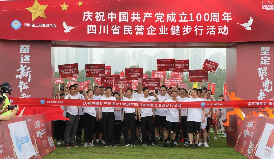 為慶祝中國共產黨百年華誕,積極展現四川省廣大民營企業家健康向上的精神風貌,6月16日,四川省工商業聯合會舉辦了“堅定跟黨走,奮進新征程”慶祝中國共產黨成立100周年四川省民營企業健步行活動,發揚新時代川商精神,展示新征程川商風貌。全國工商聯副主席、省政協副主席、省工商聯主席陳放,省委統戰部副部長、省工商聯黨組書記陳泉等領導出席活動,四川名企領頭,近50家企業報名參賽。作為四川民營企業的杰出代表,通威集團積極參與健步活動,共同慶祝黨的百年華誕。