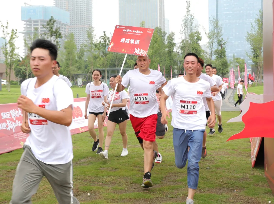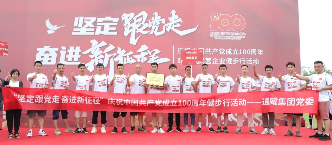 活動現場 本次健步行活動在成都天府新區天府公園舉行,在開幕式上,參賽隊伍百人齊唱《沒有共產黨就沒有新中國》,氣勢磅礴,鏗鏘有力,用最樸實的方式,表達對黨最衷心的祝福。隨后,陳放主席致辭表示,今年是建黨100周年,四川省工商業聯合會以“運動”的名義建立起企業交流的平臺,讓四川民營企業黨員群眾在健步行活動中學思踐悟,進一步推動黨史學習教育走深走實。 開跑儀式 在5公里樂跑賽健步行活動中,通威集團代表隊憑借飽滿的精神風貌和井然有序的隊伍榮獲最佳組織獎。除健步活動外,現場還開展了多種形式黨史學習宣傳活動,帶領參賽者一起回顧黨的奮斗歷程,感悟黨的初心使命,傳承黨的紅色基因。 通威集團代表隊奮力奔跑 通威集團代表隊榮獲最佳組織獎 通威集團作為以農業、新能源為雙主業的大型跨國集團公司,是發端并成長于四川、走向世界的優秀川企代表。未來,通威集團將踐行新思想、奮進新時代,扎根四川、扎根成都,在實現自身穩健快速發展的同時,努力為四川經濟社會的高質量發展貢獻更多通威力量! 通威集團代表隊合影留念