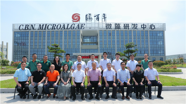 劉主席一行參觀了賜百年公司的囯家微藻固碳工程示范基地、GMP車間、智能監控滅菌系統、藻種繁育中心和產品檢測與研發中心,對賜百年公司自主研發的5G工業4.0光生物反應器系統進行了詳細的了解,針對該反應器的多層復合結構、CO2高效應用模式、光伏供電、LED補光措施等關鍵構造進行了細致的交流。