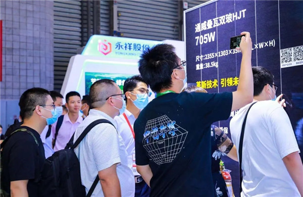 產業鏈上游的永祥股份展出了P型致密料、P型復投料、N型硅料、棒狀料,產品純度達到99.999999999%,滿足下游N型產品質量需求,部分產品可以達到電子級晶硅標準,真正實現了高純晶硅中國智造。產業鏈中游的通威太陽能帶來了高效、多元化系列產品,異質結156.75雙面9BB、166雙面9BB、210雙面半片12BB電池,單晶156.75單面5BB、166雙面9BB、210雙面12BB電池,全方位滿足客戶對高效電池片產品的需求。產業鏈終端通威新能源“漁光一體”專區,沙盤模型全景展示通威“漁光一體”現代產業園等,無人機巡檢設備2.0版精彩亮相,吸引多批展商了解詢問。