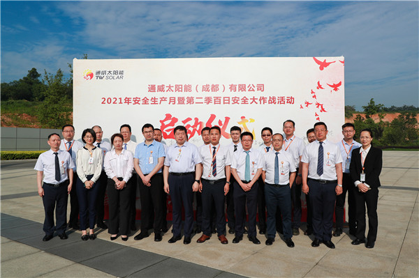 為認(rèn)真貫徹落實(shí)和響應(yīng)國(guó)務(wù)院安委會(huì)辦公室、應(yīng)急管理部《關(guān)于開展2021年全國(guó)“安全生產(chǎn)月”活動(dòng)的通知》要求,5月31日,在全國(guó)第20個(gè)安全生產(chǎn)月來(lái)臨之際,在通威太陽(yáng)能首席運(yùn)營(yíng)官蕭圣義的指示下,通威太陽(yáng)能以“落實(shí)安全責(zé)任,推動(dòng)安全發(fā)展”為主題組織開展安全生產(chǎn)月暨第二季百日安全大作戰(zhàn)活動(dòng)啟動(dòng)儀式。通威太陽(yáng)能合肥基地總經(jīng)理謝泰宏,通威太陽(yáng)能副總經(jīng)理周華,通威太陽(yáng)能安全顧問(wèn)張忠文,光伏研究院院長(zhǎng)劉正新,眉山基地總經(jīng)理助理蔣衛(wèi)朋,通合新能源(金堂)有限公司總經(jīng)理助理羅曉云、郭寬新及各基地各廠部負(fù)責(zé)人出席啟動(dòng)儀式并簽名。
