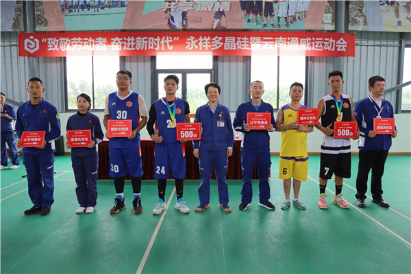 5月28日,隨著最后一場永祥多晶硅與云南通威籃球友誼賽的圓滿結束,迎來了 “致敬勞動者 奮進新時代”永祥多晶硅暨云南通威運動會的完美收官閉幕式,永祥股份副總經理杜炳勝,永祥多晶硅總經理劉逸楓、安全環保總監牟俊豐以及各部門經理出席為獲獎選手頒獎。