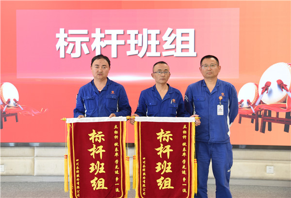 會上,班組長以PPT形式分別從班組交接班管理、學習培訓、對標管理、設備維保、屬地衛生、隱患排查整改、阿米巴等方面對5月班組建設工作作總結匯報。分享班組建設管理經驗,并提出6月工作計劃。通過激烈角逐,最終評選出三名紅旗班組。標桿引領,同頻共振,本次班組建設除評選紅黃旗班組外,還將3-5月累積綜合得分排名前兩名的電儀車間2#班、燒堿2#班評選為“標桿班組”。