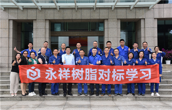 5月24日,永祥樹脂常務副總經理杜亦軍率生產/后勤體系干部員工赴尚緯股份進行對標交流。尚緯股份副總經理兼技術中心總監沈智飛,尚緯股份生產運營副總監欒淵明等領導熱情接待并陪同座談。