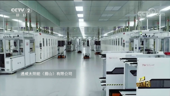 從硅料到一片可以真正用來發電的光伏電池,需要歷經很多個環節。通威太陽能要做的是更重要的一步,把硅片變成電池片。紀錄片中,通威太陽能眉山基地負責人帶領技術人員對一條僅連續運轉了130天的生產線再升級。對光伏行業而言,慢跑等于退步。對效率的極致追求,讓產品和技術的迭代變得非常迅速。
