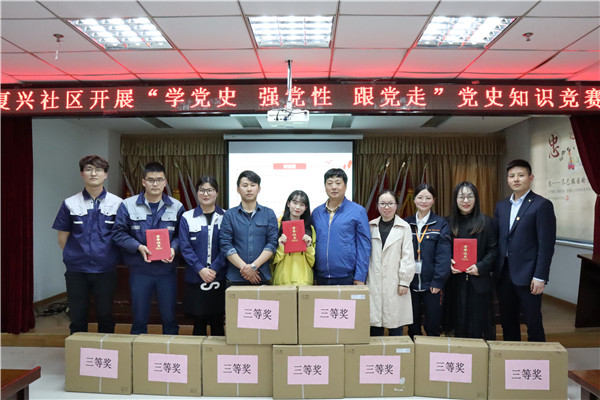 本次比賽分為必答題及搶答題環節,競賽內容涵蓋黨史、新中國史、改革開放史、社會主義發展史等內容,題庫內容豐富、知識面廣。比賽中,各參賽黨員代表精神飽滿、機智作答,以豐富的知識儲備和精彩的臨場發揮,展現出良好的理論知識水平及過硬的思想政治素質。賽后,復興社區黨支部書記為獲獎選手頒發了獎杯和證書,并鼓勵黨員們不忘初心,繼續發揮黨員模范帶頭和輻射作用,從百年黨史中汲取前行力量。