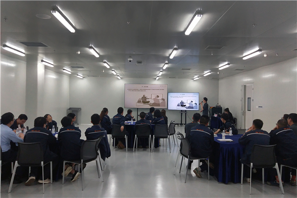 眉山基地的主題分享包含A1車間預清洗槽與酸槽降耗改善、F1廢水噸水成本降低項目及166背膜提產工藝優化改善。來自工藝部和廠務部的技術骨干,從項目背景、改善團隊、現狀分析、改善計劃、方案實施和項目成果等方面將理論和實際相結合,以淺顯易懂的表達進行分享,使參會人員能夠快速理解、吸收并運用。分享結束后進入討論環節,參會學員從自身理解出發對分享主題展開討論,提出疑問、發表看法并最終在探討中達成一致,得到新的解決思路與方法。大家表示,定期舉辦此類沙龍活動能夠幫助大家提升認知,開闊視野,受益匪淺。