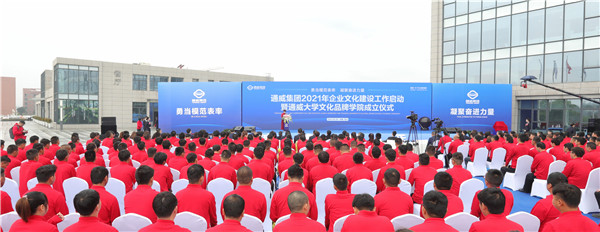 當天還隆重舉行了通威大學文化品牌學院成立儀式。通威集團經過多年發展已經建立完善的業務體系,積累了豐富的成功管理經驗,擁有了行業一流的員工隊伍,培育了積極、正向的企業文化。通威大學文化品牌學院正是依托通威深厚的文化底蘊、出眾的行業影響力,依托通威完善的業務體系、成功的管理實踐和管理智慧應運而生。儀式上,禚總、謝董、段董、黃總、張校長共同為通威大學文化品牌學院揭牌,并向首屆導師團隊頒發聘書。隨后,禚總、謝董帶領集團、股份管理總部及各體系高管共同按下啟動球,標志著通威集團2021年企業文化建設工作正式啟動!