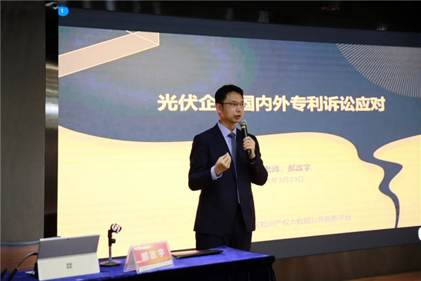 活動現場 成都市雙流區知識產權創新賦能強企培育系列課程由成都市雙流區市場監督管理局主辦,是成都市雙流區知識產權大數據公共服務平臺發揮資源整合優勢、立足本地、走進企業的重要運營項目。通威太陽能是強企培訓的第一站,也是引入國內國際先進創新資源,開展協同創新,鼓勵技術創新的重要企業。 啟動儀式上,冷魯副主任、曾麗萍部長分別圍繞知識產權創新與知識產權保護等發表重要講話。葉會成科長致辭并宣布系列課程正式啟動。首場專場培訓主講嘉賓為北京觀韜中茂律師事務所的郝政宇律師,郝政宇律師圍繞 “專利侵權風險預警和訴訟應對”和“美國337調查應對策略”兩個主題,給通威太陽能的員工帶來專業、精彩的知識產權應對策略內容。 活動現場 郝政宇律師現場授課 本次活動由通威太陽能成都、合肥、眉山三地連線同步進行,現場氣氛活躍,參與人數眾多。同時,活動還由鳳凰網、成都日報、成都電視臺、雙流融媒體中心等多家媒體同步報道。 通威太陽能自創立以來,就十分重視知識產權保護。未來通威太陽能將充分發揮知識產權事務在公司市場競爭、戰略縱深以及前瞻性布局的重要性,提高具有法律效力專利文本在企業市場競爭中的作用,深入實施創新驅動效益的戰略目標,推動公司知識產權戰略布局和實施,加強公司的知識產權風險管控、技術創新發展方面更上一步臺階。
