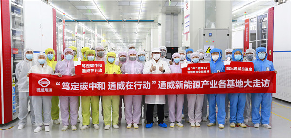 “篤定碳中和 通威在行動(dòng)”活動(dòng)走進(jìn)通威太陽(yáng)能智能制造車間合影留念