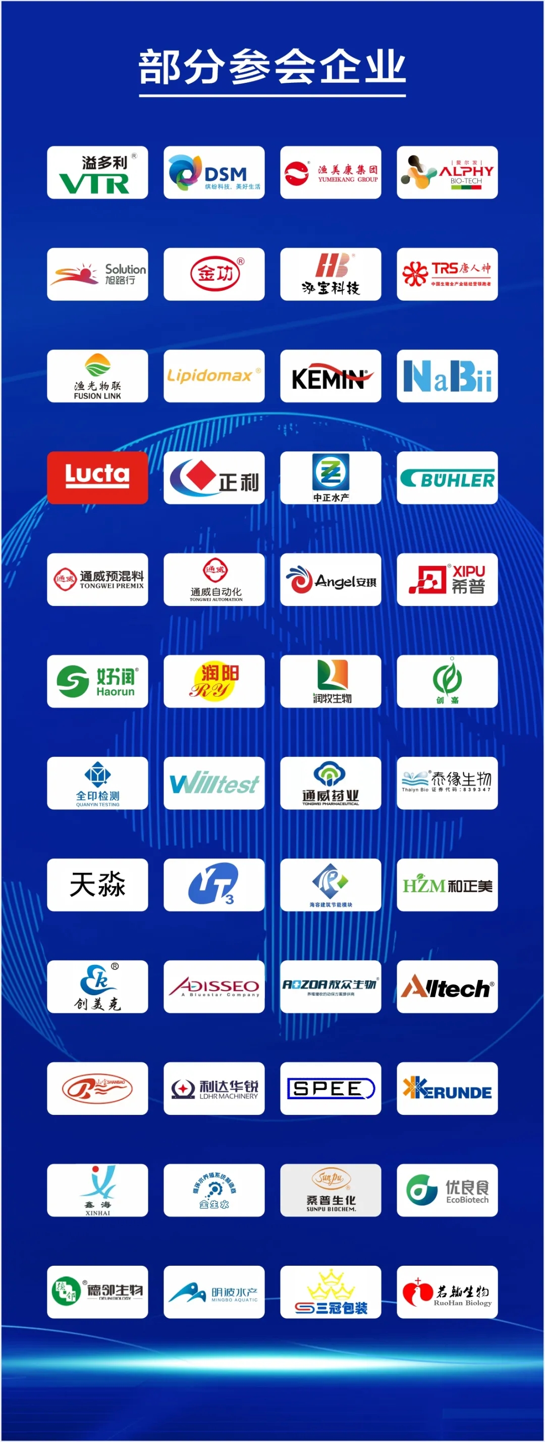 正大集團以農牧食品、批發零售、電信電視三大事業為核心的多元化跨國集團公司。在農牧食品事業方面,正大集團以“做世界的廚房,人類能源的供應者”為己任,著力打造種子、種植、飼料、養殖、屠宰、深加工、物流配送、商業零售、餐飲的從農場到餐桌的全產業鏈,為廣大消費者提供優質、安全、健康、美味的正大食品。 新希望集團是中國農業產業化國家級重點龍頭企業,中國最大的飼料生產企業,中國最大的農牧企業之一,擁有中國最大的農牧產業集群,是中國農牧業企業的領軍者,以“為耕者謀利、為食者造福”為經營理念,致力于打造世界級的農牧企業。 澳華集團是專注于以水產飼料為核心業務的國家高新技術企業。提供的服務包含動物營養搭配、養殖環境凈化和養殖模式咨詢等一體化解決方案。公司通過一系列高標準、綠色環保的方式以及可持續發展策略,引領世界高端飼料發展,幫助優秀的養殖戶養出更高效益、更健康的產品。 渤海水產股份有限公司是匯泰集團的控股子公司,主要從事南美白對蝦及海參的海水養殖、水生植物養殖、對蝦苗種繁育、飼料生產及冷藏加工業務。公司秉承“海洋牧場、實業發展,粗放養殖、野生品質”的企業理念,以食品安全為己任,致力于打造綠色高端、健康安全的產品。 廣東粵海飼料集團股份有限公司是一家主要從事水產飼料研發、生產及銷售的國家創新型試點企業及高新技術企業,是我國大型的集團化優質水產飼料企業。公司深耕特種水產飼料領域,以技術領先為競爭優勢,不斷追求創新,擁有深厚的技術底蘊、豐富的產品種類和完善的營銷網絡。 百洋產業投資集團股份有限公司是一家集科技研發、技術服務、水產及畜禽飼料、水產食品、海產品、生物保健品以及環保工程等為一體的綜合性企業集團。歷經近二十年發展,百洋集團已從創業之初從事的飼料與養殖產業、羅非魚食品加工產業發展為以水產食品為核心、以飼料為重點、以水產精深加工食品和生物制品為延伸和突破,實現了從“水產品加工”到“精深加工食品及生物制品”的產業模式升級。 此外,包括溢多利、帝斯曼、漁美康、安迪蘇、旭路行、金功機械、愛爾發、泓寶科技、漁光物聯、長沙正利、納比生物、利必多、中正水產、希普生物、安琪酵母、博仕奧生物集團、通威預混料、通威自動化、全印檢測、威爾檢測在內的全產業鏈上下游企業代表也將齊聚一堂,共同探討科技興漁,深化綠色養殖、全面保障食品安全的“解題思路”,共同推動水產行業高質量發展。