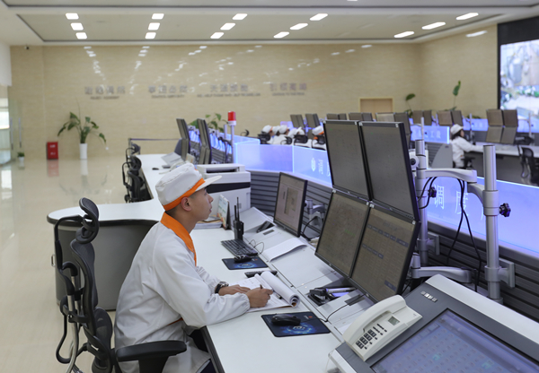 永祥新能源中控大廳,員工認真檢測記錄設備運行狀況