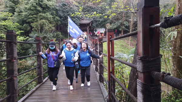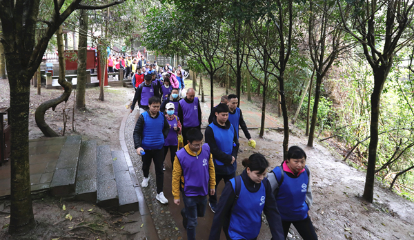 參賽人員被混編成4隊,分別從基層員工中選出“隊長”分組進行登山比賽,并特別制定了以每組最后一名到達時間為準的比賽規則。全新的比賽規則,激發了各組隊員的協作和拼搏潛力,大家不言放棄、不言辛苦,互幫互助,全力以赴,為團隊榮譽而戰。在登山過程中,大家磨練了意志,激發了潛能,展現了團隊良好的凝聚力和執行力。