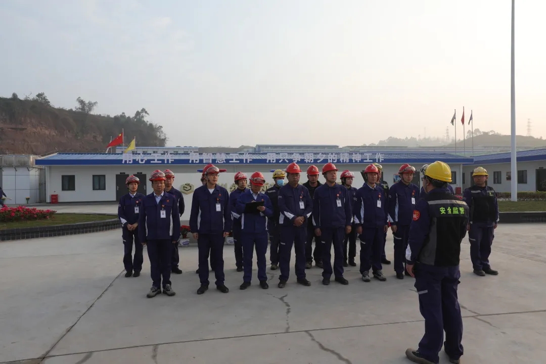 專項傳播小組抵達二期項目建設現場,永祥新能源正在整隊準備進行每周安全大檢查