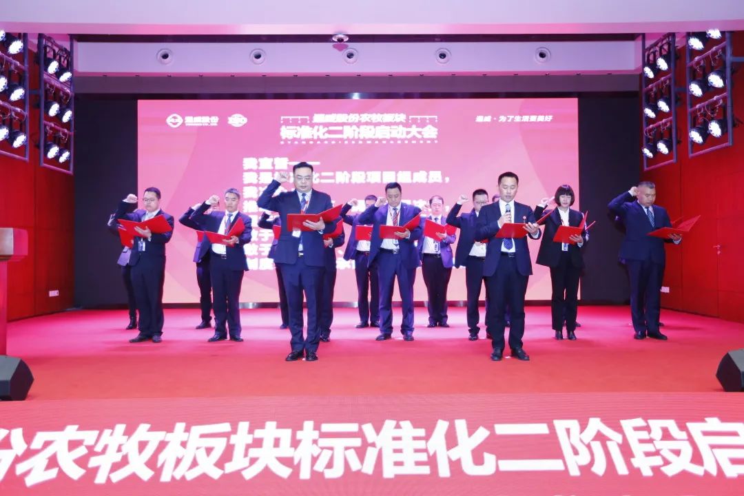 2月25日,通威股份農牧板塊標準化二階段啟動大會召開,通威股份總裁郭異忠、管理總部各職能線負責人、生產部、信息部及通威自動化公司標準化二階段相關人員參會,片區及分、子公司相關負責人遠程連線參與。