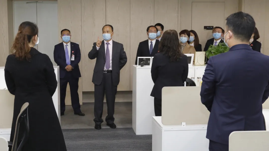 主席逐一視察各辦公區(qū)域,看望并親切問候員工