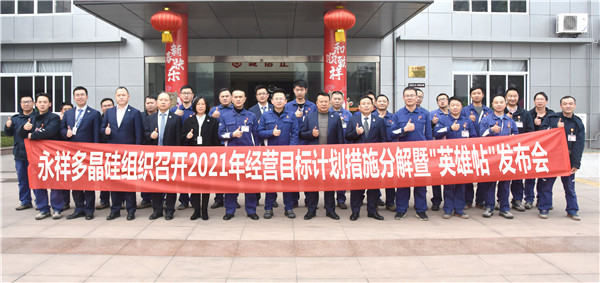 2月8日,永祥多晶硅組織召開了2021年經營目標計劃措施分解暨“英雄帖”發布會。永祥股份副總經理兼永祥多晶硅杜炳勝,永祥多晶硅副總經理汪云清,永祥多晶硅安全環保總監牟俊豐,永祥多晶硅副總工程師冉祎出席會議,公司各部門工段長及以上管理干部參加會議。