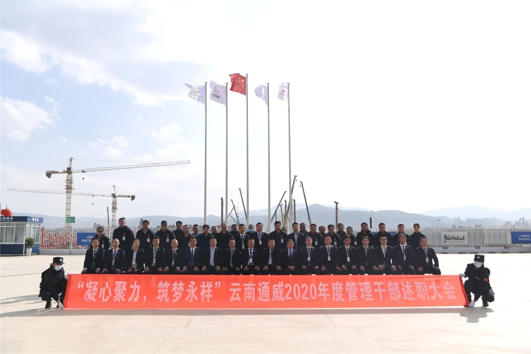 杜總充分肯定了公司2020年度工作取得的成績,深度剖析了2020年項目成立以來所遇到的問題,對2021年工作做了詳細規劃和部署并提出指導性意見。杜總表示,回顧2020年度,公司各項工作按節點有序推進,希望各部門再接再厲,在接下來取得更大的突破性進展。2021年云南通威高純晶硅要繼續貫徹通威集團董事局劉漢元主席“風清氣正,打造精品工程”的指示,圍繞五個全新思路開展工作。敢于直面問題,加強團隊溝通與融合,強化工作精準度與執行力,不僅要做到態度與思想到位,更是要行為與措施到位。 以四個百分百為目標,圍繞“一個中心、兩個圍繞、三個保障、四個新”的基建期管理思路及“安全至上、文化生成、精品工程、精益生產、品牌品質、綜合效能”六個維度,統一思想、樹立目標,敢于擔當、使命必達。 合影留念 杜總強調,總結過去,才能更好展望未來;直面問題,才能突破難關。云南通威要建立起高目標、鐵紀律、有血性、有朝氣、達成目標“起立”承諾的團隊,意識靠前、措施精準、結果爭優、全員行動、只爭朝夕,銳意進取,只做第一。2021年公司將以精品工程為主線,以年底投產為目標,抓難點,聚焦關鍵,全盤推演,發揮我們的潛力與長處,把工作做到極致,共同打造最美森林式花園工廠!