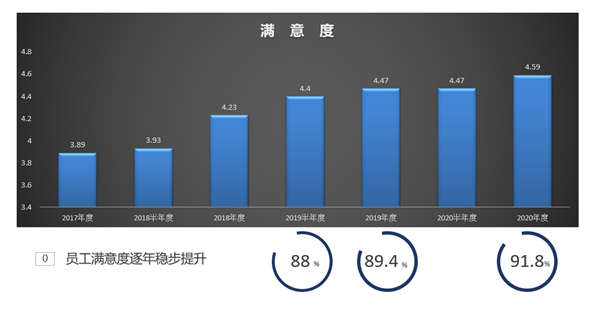 1月25日,永祥股份企業(yè)文化總結(jié)大會上,永祥新材料發(fā)布公司2020年度員工滿意度測評,數(shù)據(jù)顯示,永祥新材料員工滿意度逐年遞增,2020年度再創(chuàng)新高,獲得4.59的高分,位居永祥板塊榜首。