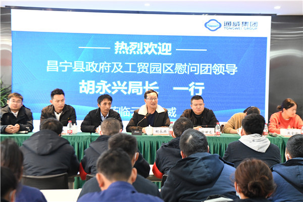 1月18日,昌寧縣工信局局長胡永興、昌寧園中園主任徐世龍一行蒞臨永祥樂山基地慰問云南通威學員,在春節(jié)前夕帶來了黨和政府的關(guān)懷和溫暖。永祥股份副總經(jīng)理兼云南通威總經(jīng)理杜炳勝,生產(chǎn)組組長楊成及人事組組長周旭熱情接待并進行座談交流。